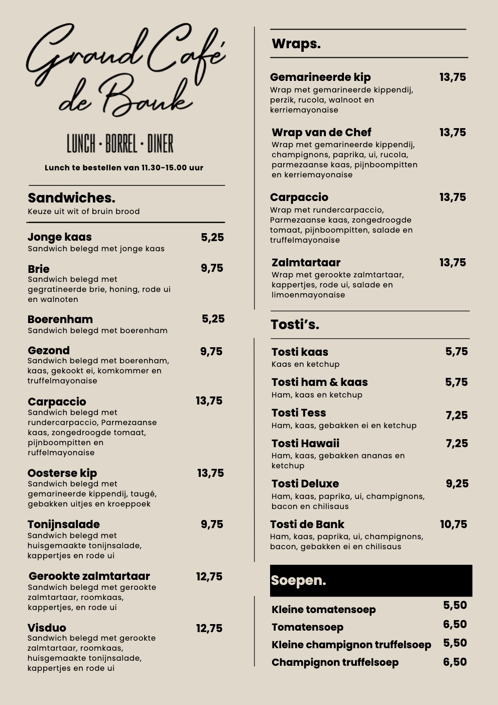 GRAND CAFÉ DE BANK Ontzettend lekker gegeten. Begonnen met gernalenkroketjes enorm lekker en als hoofdgerecht spareribs ze waren helaas niet heel mals maar veder goed te eten